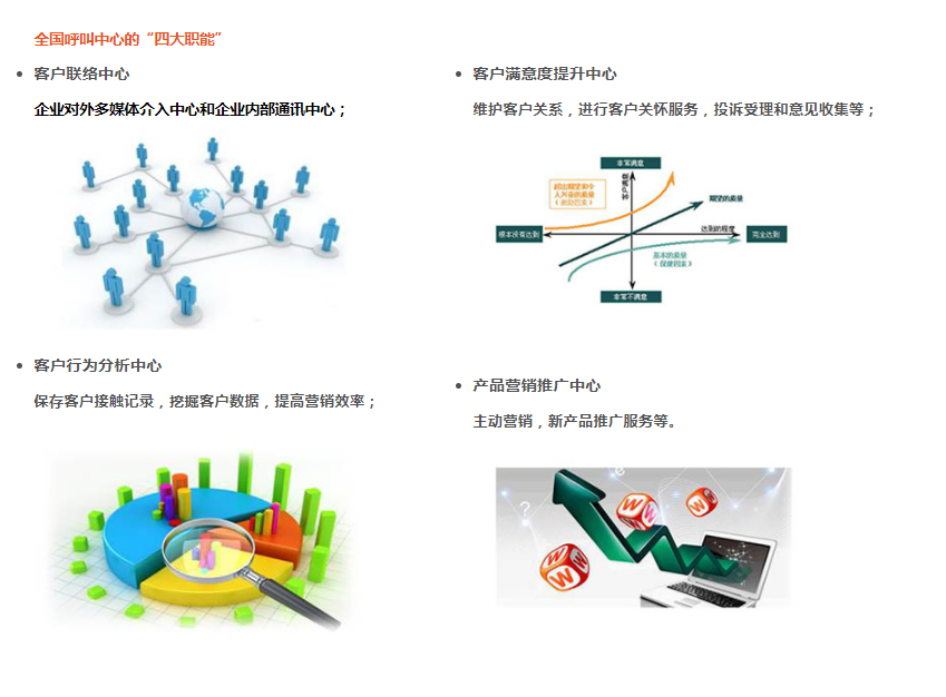 方正寬帶全國呼叫中心的成立源于對高品質(zhì)客戶服務(wù)的追求,以豐富的客戶服務(wù)經(jīng)驗(yàn)為方正寬帶全國范圍內(nèi)的用戶提供迅速、準(zhǔn)確、高品質(zhì)的個(gè)性化技術(shù)支持服務(wù)。最大限度的提升客戶的滿意度,充分發(fā)揮方正寬帶全國呼叫中心的“四大中心”職能,即客戶聯(lián)絡(luò)中心、客戶滿意度提升中心、客戶行為分析中心、產(chǎn)品營銷推廣中心,緊密聯(lián)系企業(yè)與客戶的關(guān)系